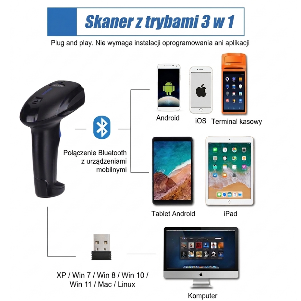 - ✔Szybki odczyt kodów 2D z ekranów smartfonów, tabletów i monitorów LCD.